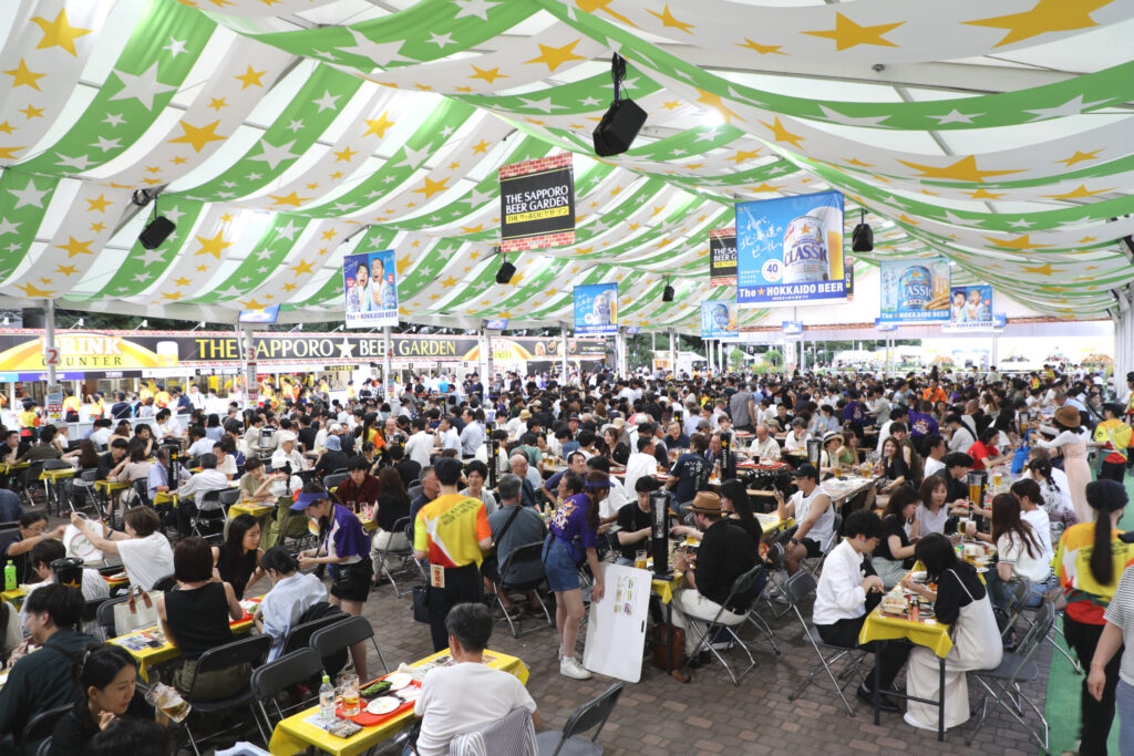 さっぽろ夏まつりのビアガーデンは日本最大規模を誇る夏の一大イベント。 大通公園を中心に毎年7月から8月にかけて27日間と約1か月開催されています。