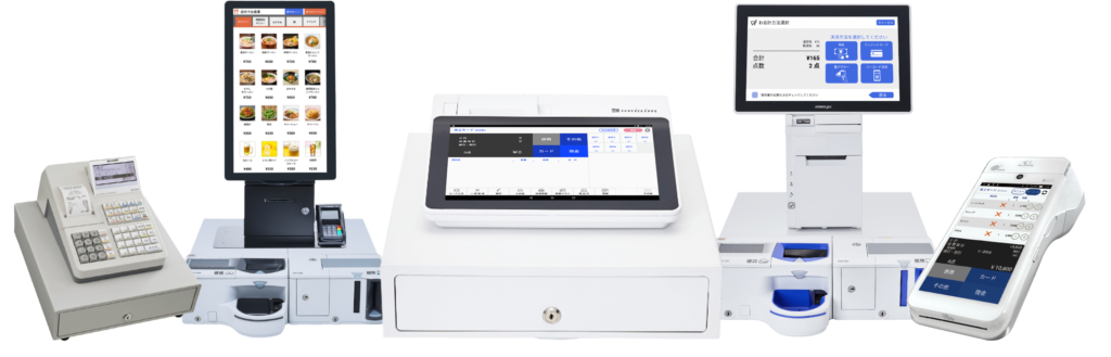 簡易レジから最先端のセルフレジやタッチパネル型券売機などの端末もラインナップ